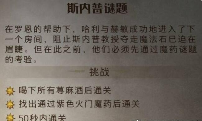 我们只需要在刚才的斯内普谜题中,让哈利和赫敏交换一下喝的药剂就可以解锁第二个支线了。