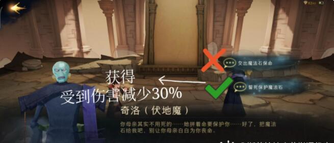 2、第二个剧情选择,我们选择誓死保护魔法石,这样就可以减少伤害。