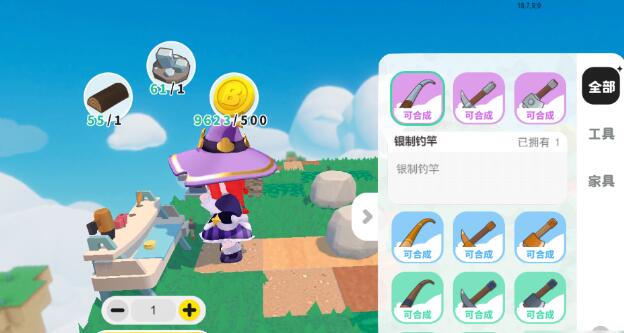 3、随后在制作台制作花费木头和石头制作属于自己的鱼竿。