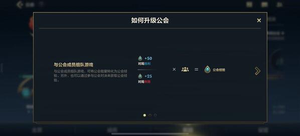 1、首先,玩家可以通过和公会成员组队进行游戏,将公会能量转换成公会经验,公会对决也可以获得公会经验,并且在公会对决中胜利可以获得50点公会经验,失败则只有25点公会经验。