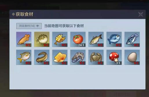 1、采集:玩家可以在各大地图进行采集,有几率获取不同的食材。