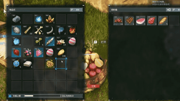 4、获取20份木材后,按B打开建筑面板即可建造饲料箱了。