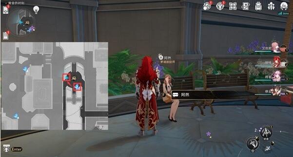 2、简报其二:前往黄金的时刻的钟表小子广场,来到下图的位置,与【阿然】对话得到。