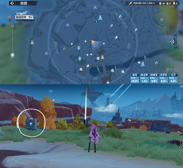 1、打开地图,前往下图位置,就能发现奇点方块。