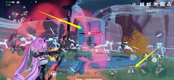 3、使用射箭瞄准奇点魔方进行射击,射中后接近奇点石,并将里面的黑核拾取了。