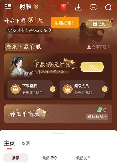 1、首先玩家需要拥有【网易大神】这个app,随后在这里进入【射雕】这个游戏的圈子。
