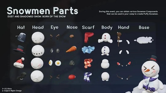2、并且玩家之间还可以交换雪人部件,帮助咸鱼玩家也可以快速收集齐雪人配件。每个部件都有四种不同形态可选,可以自定义雪人外貌。