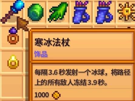 2、寒冰法杖:每隔几秒钟发射一个冰球,将路径上所有的敌人冻结数秒。
