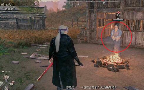 4、来到下图所示的位置和篝火旁的弟子战斗,取得胜利后了解到师父才是砍死其他的弟子的人。