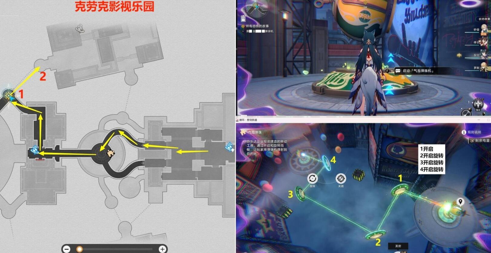 2、在上图完成剧情之后,会自动传送到新地图【克劳克影视乐园】,按照下图所示的弹珠机进行传送。