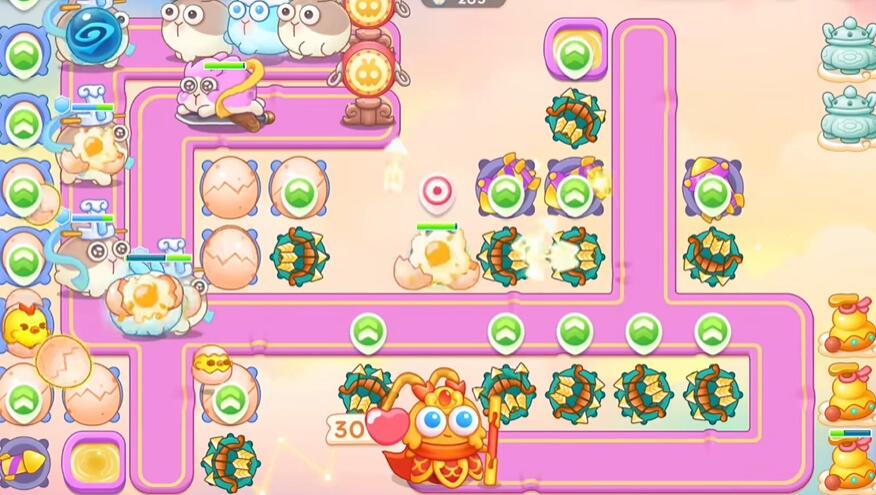 4、把花篮打掉,继续建造鸡蛋、导弹、多重箭,接着打钱袋。