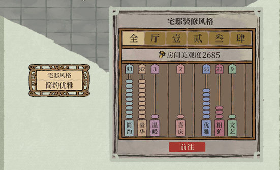 4、并且每种陈设都有简约、温暖、豪华等12种属性,玩家家具摆放越多,知府宅邸的属性也会得到提升,让自己的家变得更加的豪华。