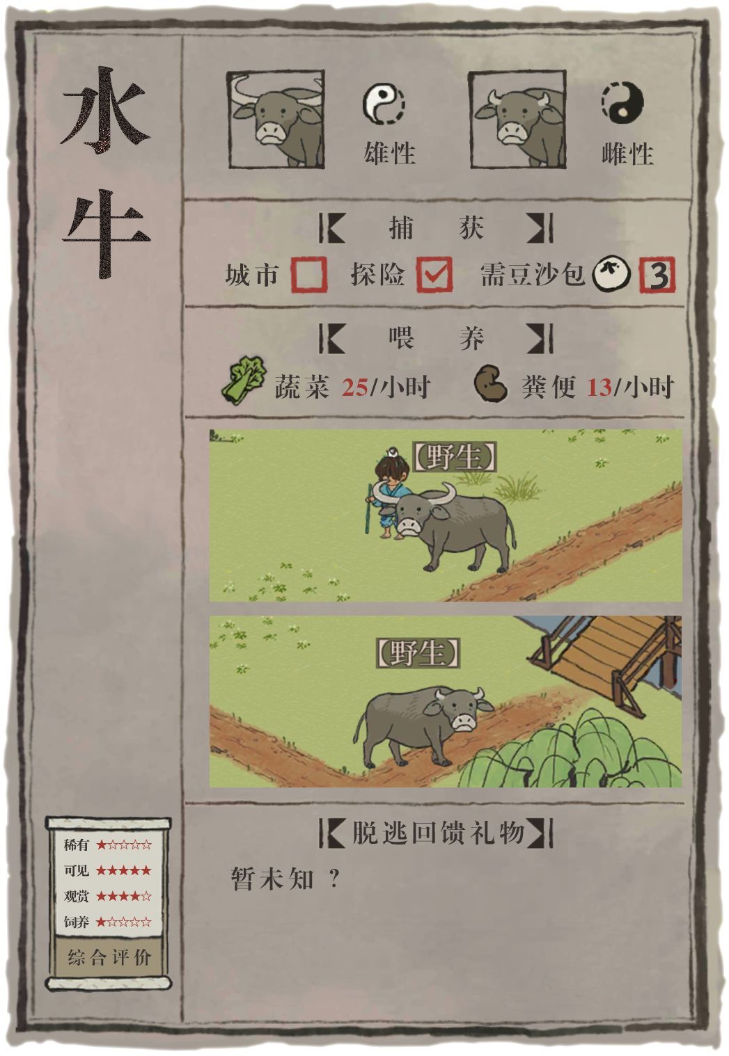 以上便是小编为大家带来的江南百景图小动物水牛图鉴,希望可以帮助到大家。