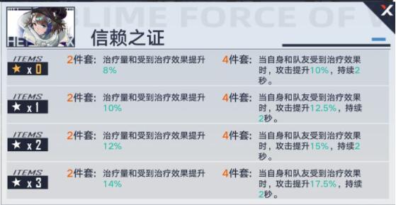 效果:提高治疗和受到的治疗效果,当队友或自身得到治疗后提升攻击。