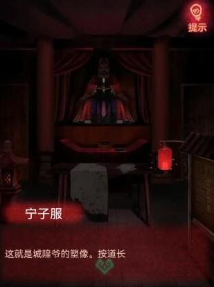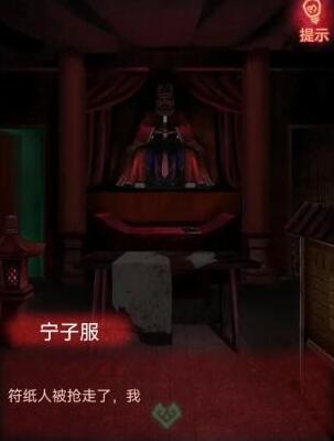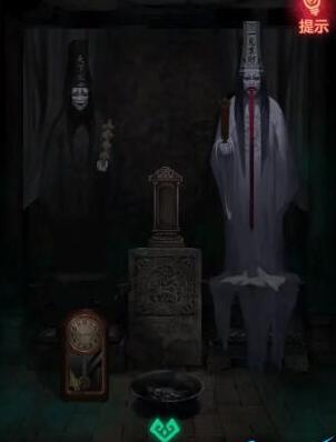 11、我们到城隍庙左门,拿令牌获得提示,根据提示调整时钟即可获得符纸人,我们按步骤把符纸人放中间案台上点击中间画写状子。