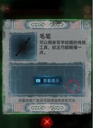 3、我们到城隍庙,需要到外面点击桌子,打开第一个抽屉即可获得毛笔。