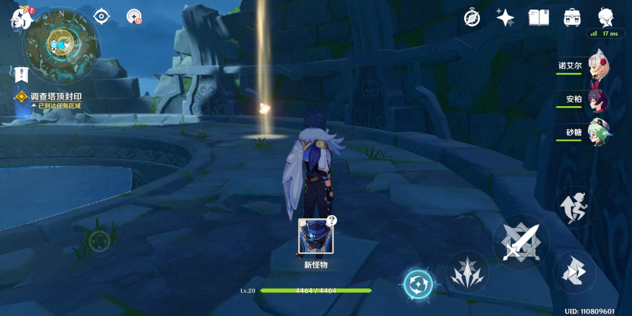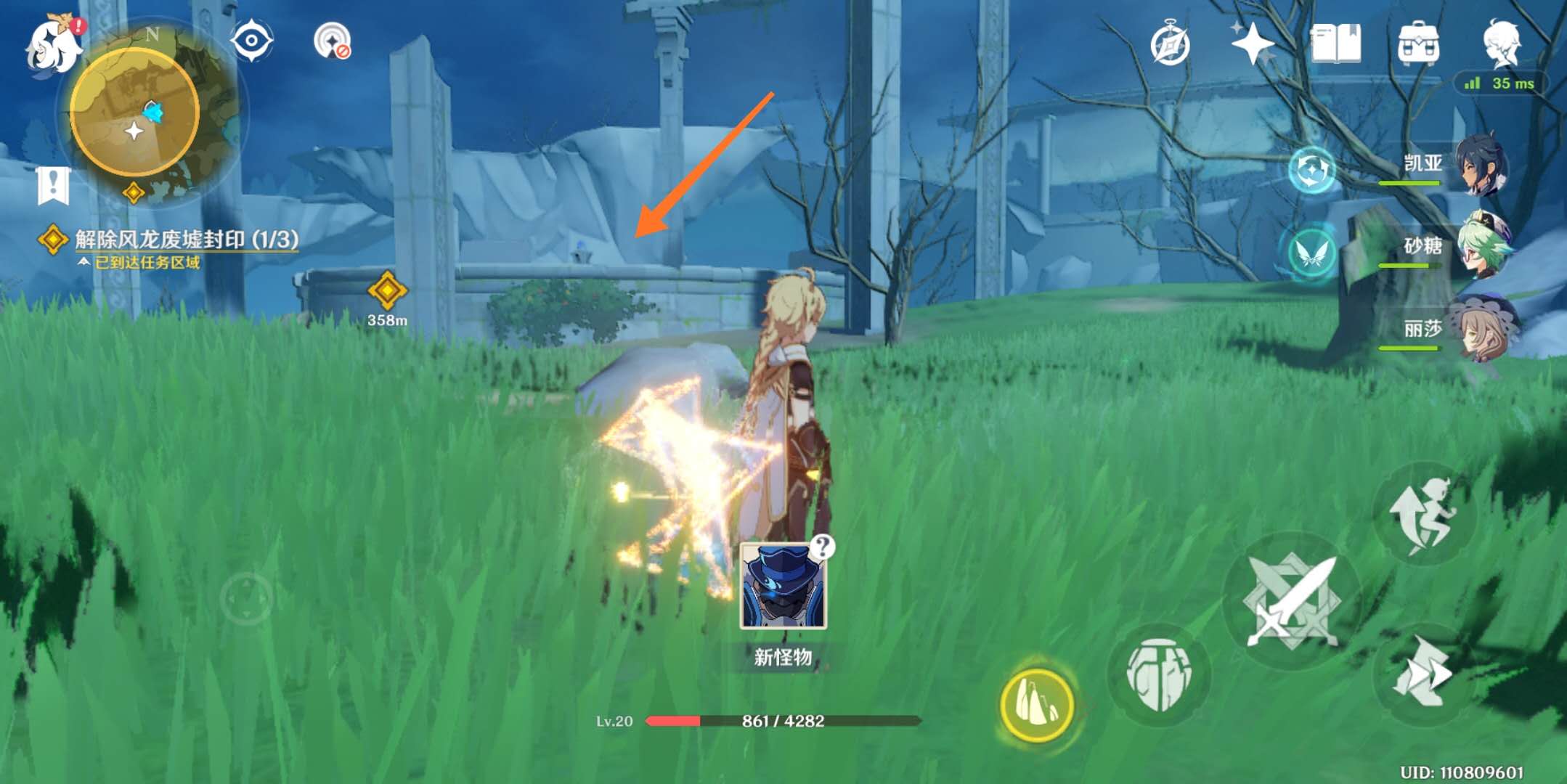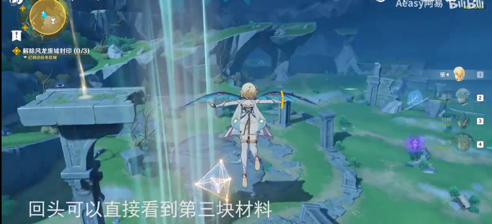 1、光球在祭坛周边找,3个风灵,蓝色光芒,长按鼠标中键用元素视野找下。