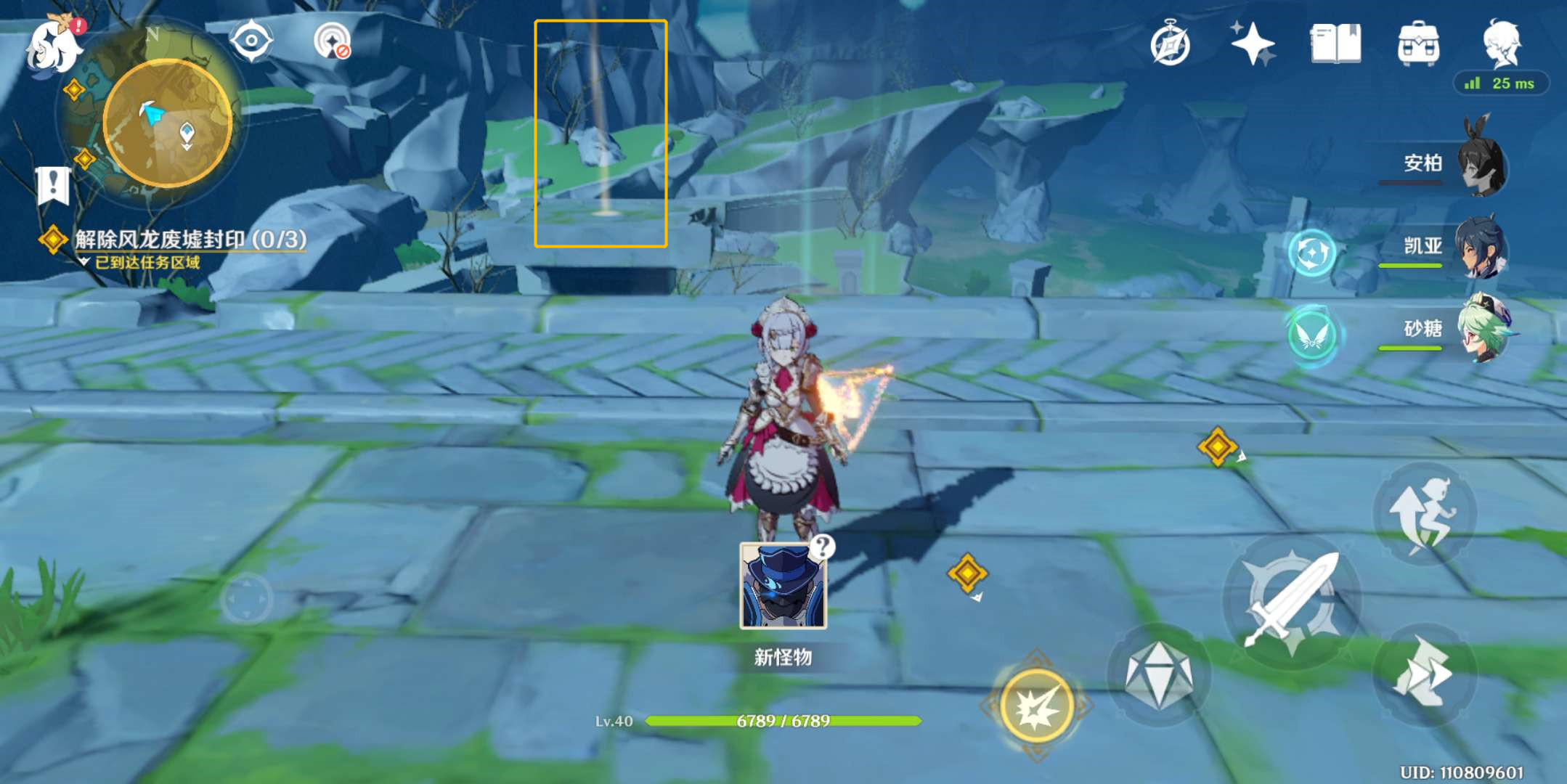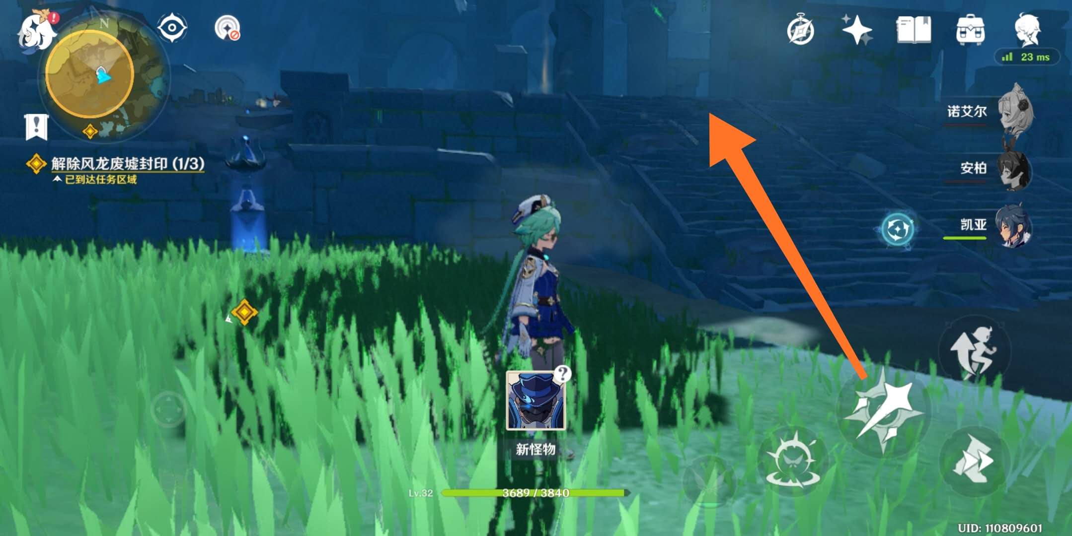 2、寻找三个菱形光球,解除风龙废墟封印(0/3)