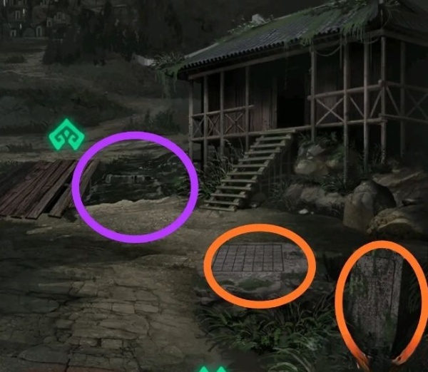 11、我们用密码打开门,把道具装水井上。查看灯笼线索,粉方框缸内有虫子。