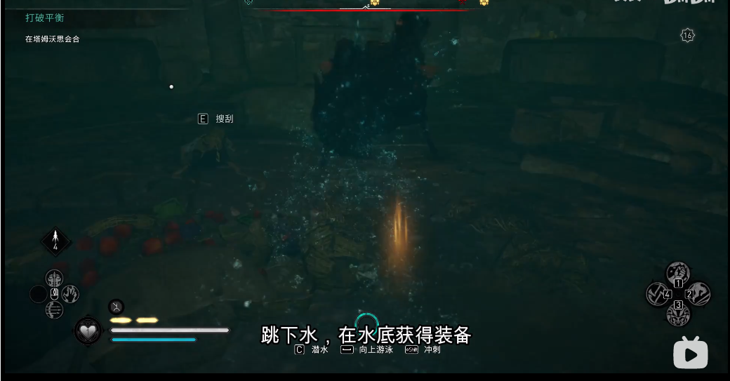 进入后直走,在前面可以看见水,跳下水,即可在水底的箱子里摸到民兵团长矛。