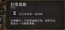 使用一个额外动作进行隐藏(需要处于对方的视野盲区)。进入隐藏状态后,只要不进入敌人的视线范围便很难被发现,而隐藏状态下,地表会分为三个部分,空白区、轻度遮蔽和重度遮蔽,当你隐藏时,你的前进路径会显示目的地的分类。