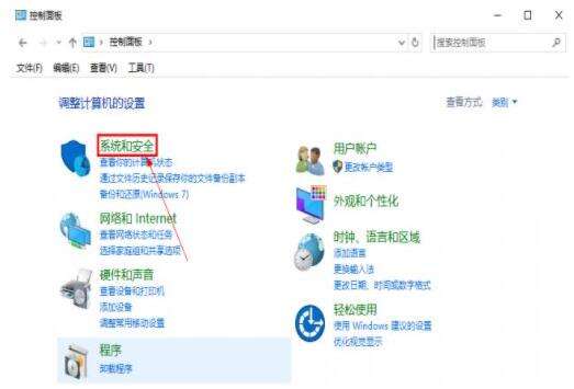 1、我们打开windows系统控制面板,点击【系统与安全】;