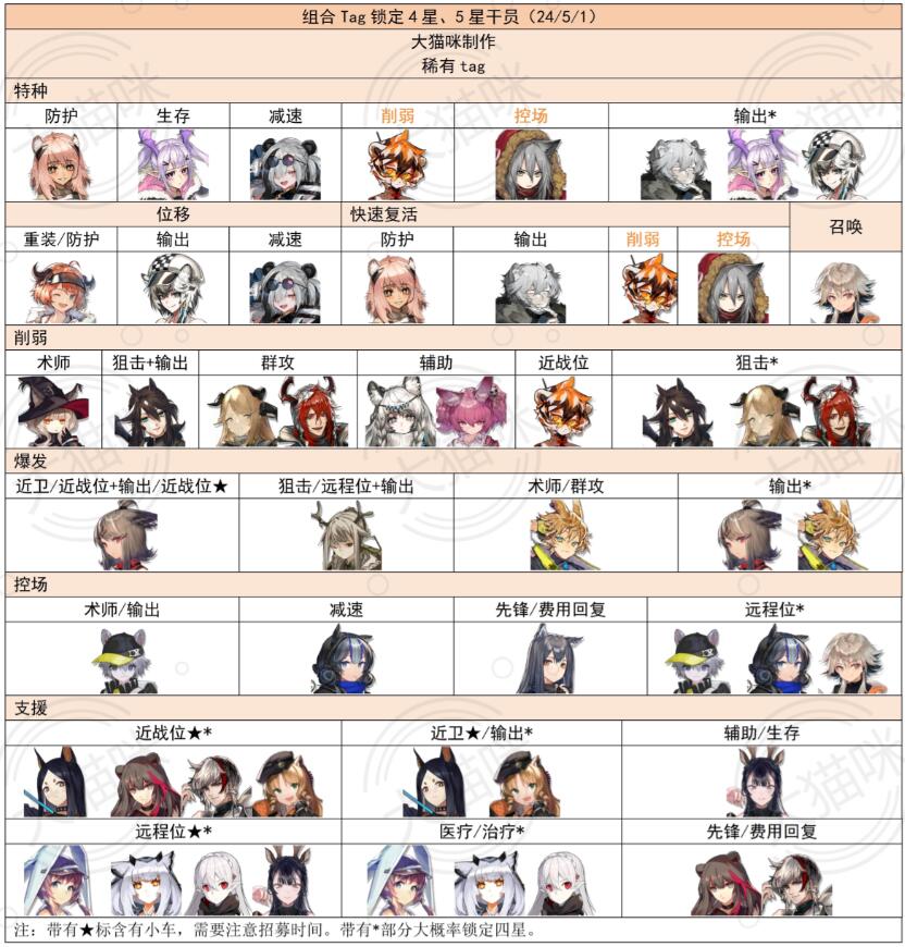 特种:砾(4星)、暗索(4星)、阿消(4星)、红(5星)、狮蝎(5星)、崖心(5星)、食铁兽(5星)