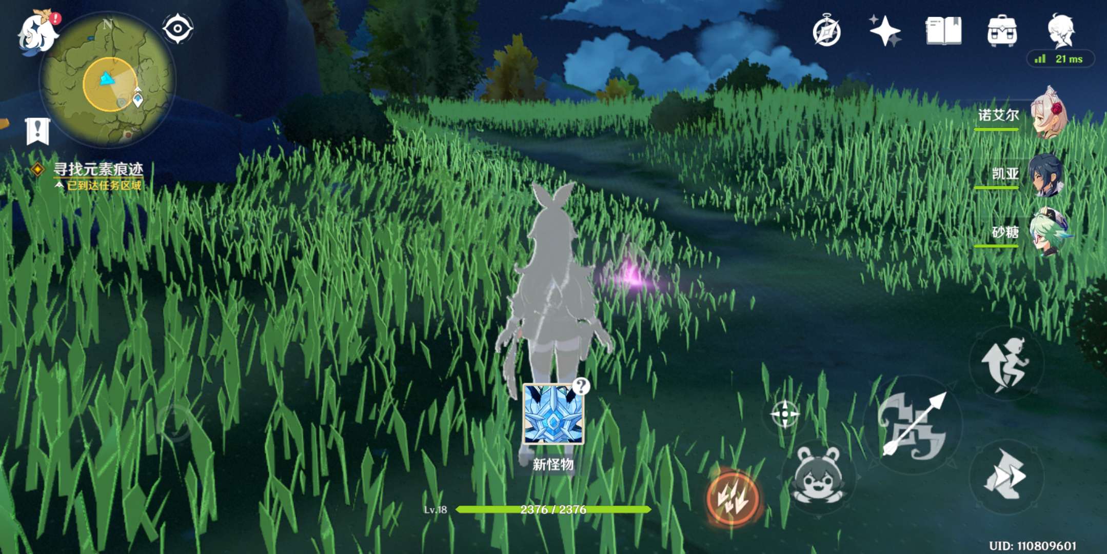 1、就是根据任务提示,到达指定区域,打开元素视野(手机玩家点左上角的眼睛,电脑玩家点击鼠标中键),查看紫色的光点;