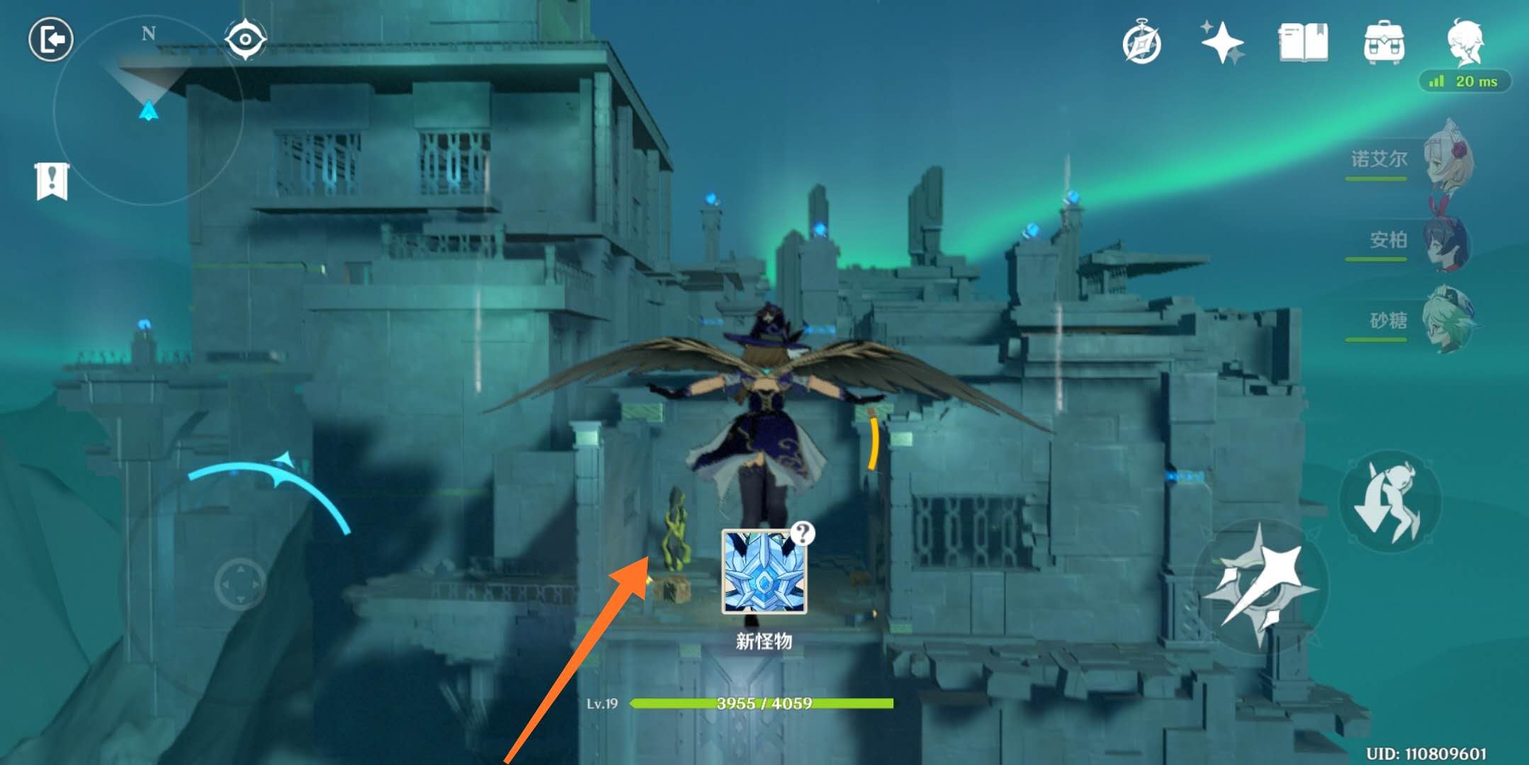3、光点全部调查完之后,根据任务光标,来到下图的位置,这里即是秘境的入口。