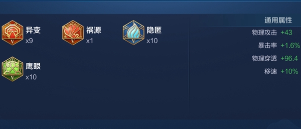 3、第一套铭文:9异变+1祸源、10隐匿、10鹰眼