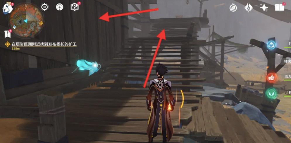 1、首先前往琉璃峰上方传送点,往图中圆圈的位置去。