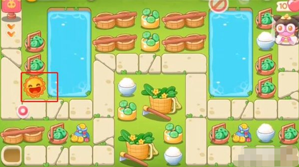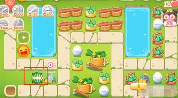1、开始的时候左侧太阳花直接满级清理周围障碍物,第一波左侧下方建立一个鱼骨头,升一级把右侧钱袋打掉。