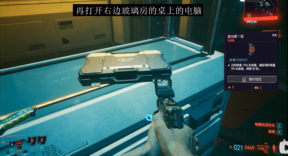 ③ 再打开右边玻璃房的灼伤电脑,点击消息,可以在最下方看到密码“9691”;