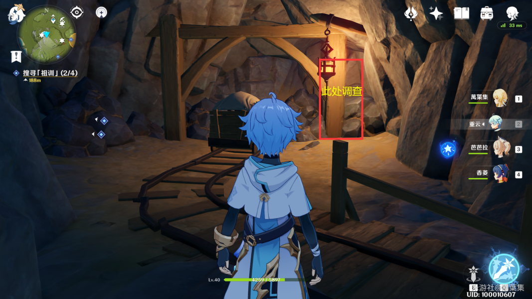 下图的红圈是洞口,有火药桶和一个丘丘人,需要把假墙砸开才能进入,之后就能在矿洞看见箱子。