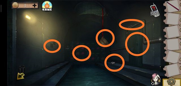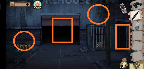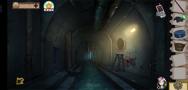 2、我们点击左下角箭头来到车库,点击左边圆台获得钥匙,再返回灯塔场景。
