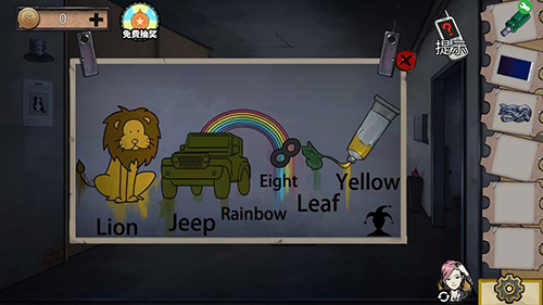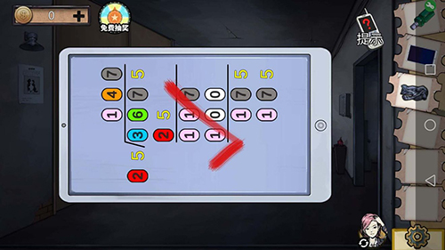6、我们上3楼,按小丑图标联想壁画线索3即可解开白色柜门谜题4。