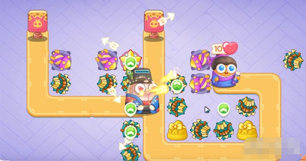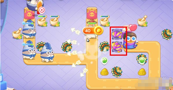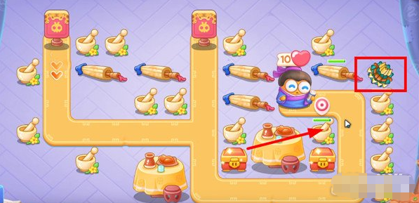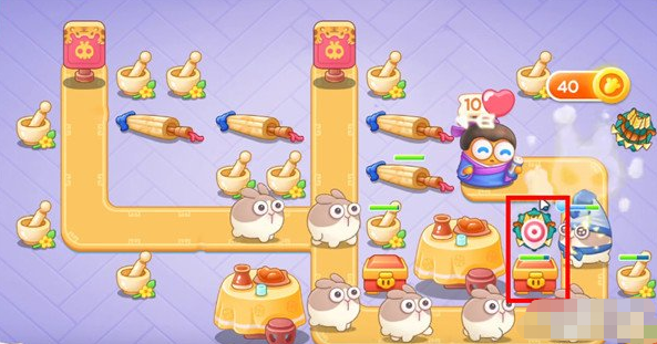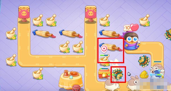 3、宝箱是便便塔防,用来减速,之后在清理旁边桌子,有钱就升级塔防。
