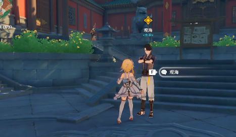 2、接着跟随任务光标,分别找三个居民交谈:琳琅、观海、博来。
