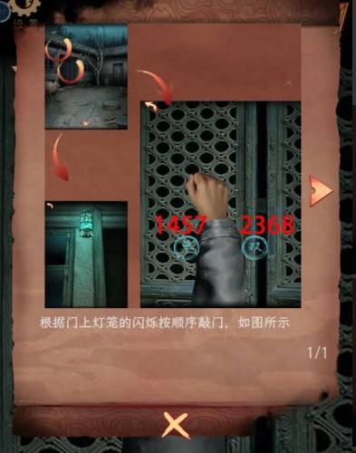 9、依次进入4个房间后走出鬼打墙,根据四个符号的顺序解开门锁上的密码。