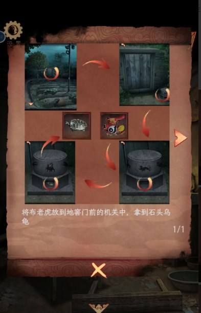 3、点击乘坐缆车抵达神婆家门口,点击左边木材,完成游戏后获得道具木板。