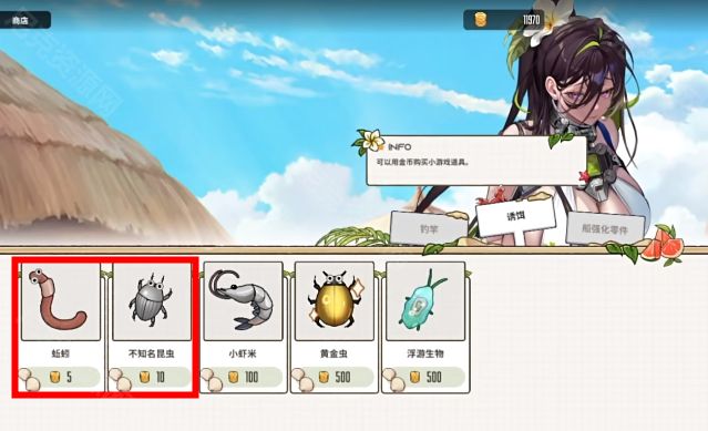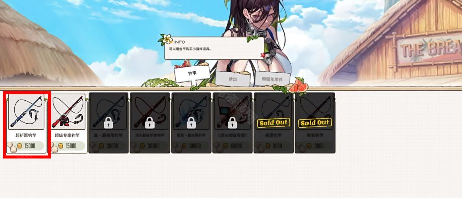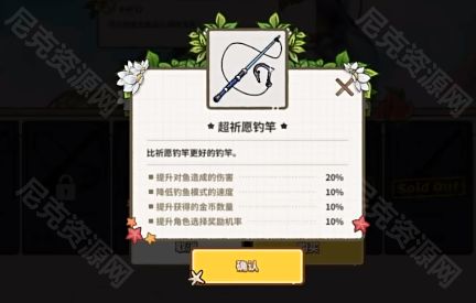 3、金币到达3000,购买第一把【祈愿鱼竿】(降低钓鱼模式的速度5%)并装备