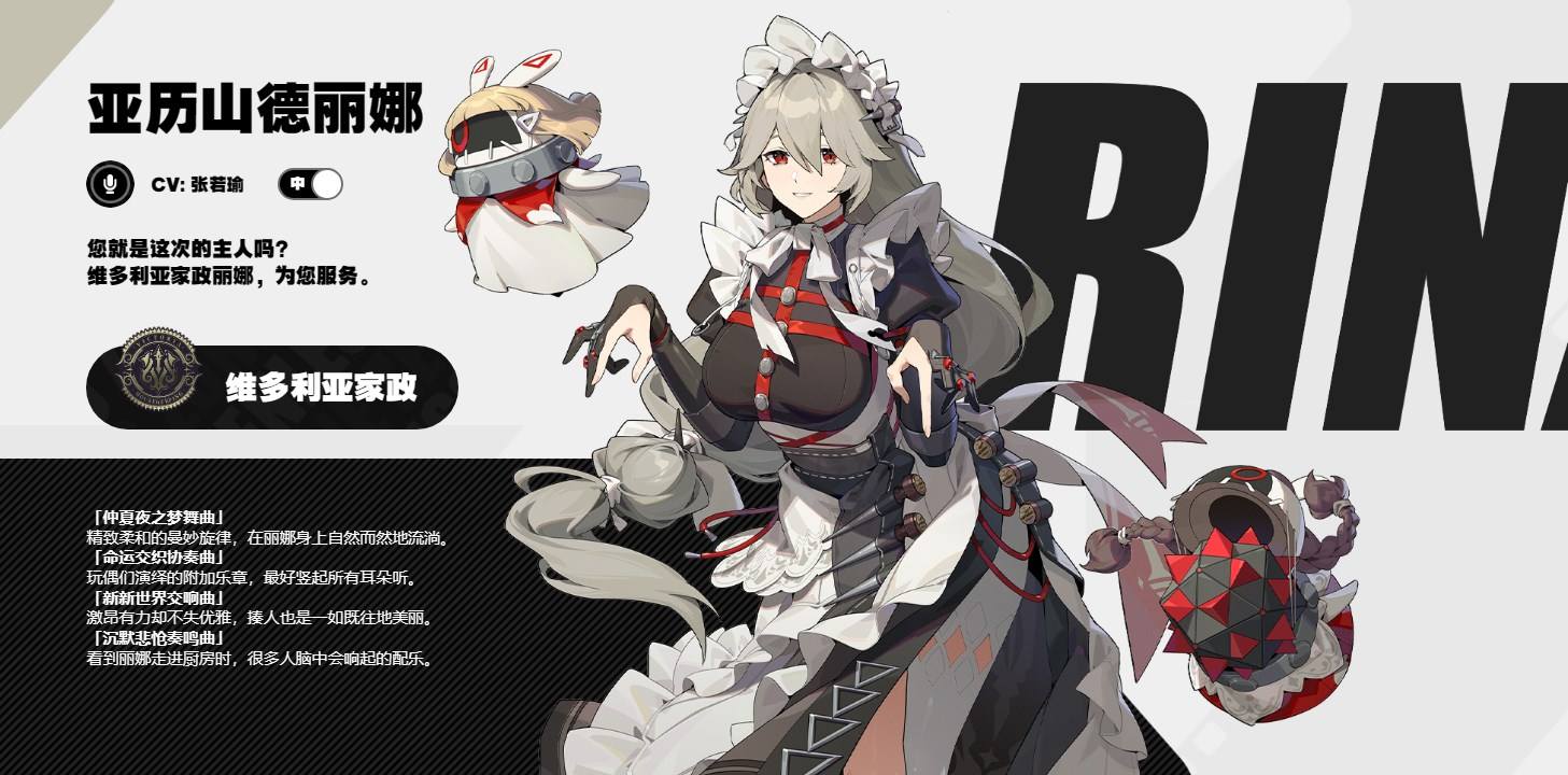 5、女仆长(亚历山德丽娜):维多利亚家政远程电系支援角色,主要依赖打满异常状态并提升队伍雷属性伤害,整体偏辅助,培养成本低,只需要堆自身穿透率即可为队伍提供穿透率,是前期作为二队培养的一个比较好的选择,阵容更适合搭配【格蕾丝】和【安东】来使用,后续版本可能会有电系强攻的补强。