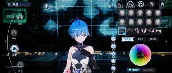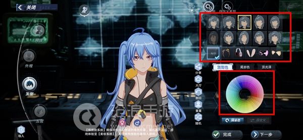 4、在发型选项中,可以挑选喜欢的发型、配饰,还能调整头发的颜色和光泽。