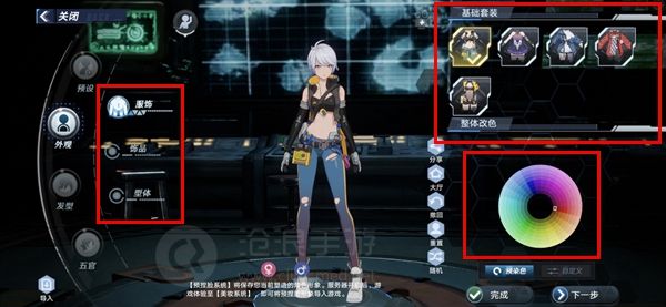 3、在外观选项中,可以进行“服饰”、“饰品”、“型体”的修改,还能选择服装以及颜色。
