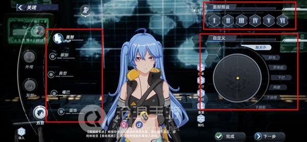 5、在五官选项中,可以对“面部”、“眼部”、“鼻型”、“嘴巴”、“面饰”进行选择和设置。