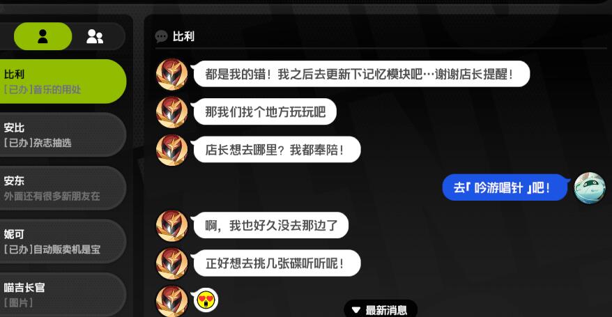 4、邀约发出后进行对话,选择要去的地点。