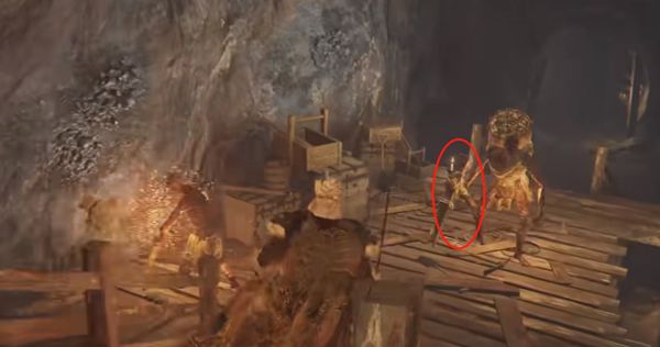 2、从赐福出发后向前抵达矿洞内,在墙边挖矿的所有怪物手中的武器就是十字镐。