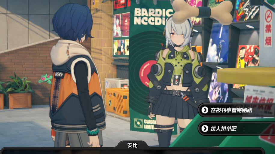 1、在上午去到六分街的报刊亭,进入退出后和安比对话,选择,找人拼单吧。