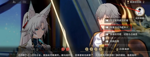 4、之后进行飞霄谈判选择,第一次选择一切与星核有关,第二次选择我曾见过丹恒本人,并选择谈判策略里面的情绪调动即可谈判成功;