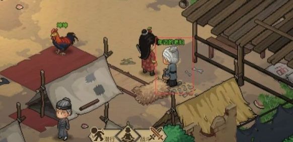 位置:屋檐下老妇手中。
